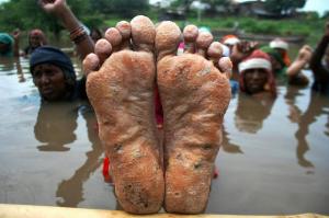 There are days when things hit you, one after the other, and you wonder what is the world coming to? You feel grateful for all that you have and feel sheepish for ever complaining. Are we ever really free, you wonder, after seeing the pitted and swollen soles of a woman who has been standing chin deep in water for 15 days, to protest the illegal rising of a dam that will wash away her village.